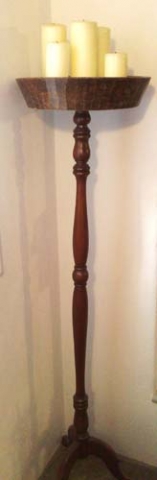 Μεταποίηση βάσης παλαιού επιδαπέδιου φωτιστικού από ξύλο καρυδιάς σε μανουάλι.