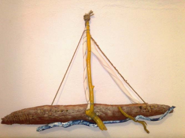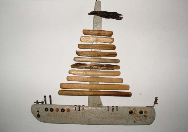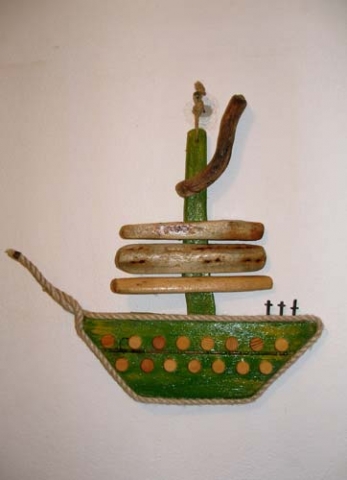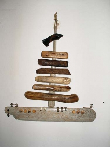 Θαλασσόξυλα, , σύρμα, σπάγκος, μεταλλικά και ξύλινα στοιχεία διακόσμησης .
