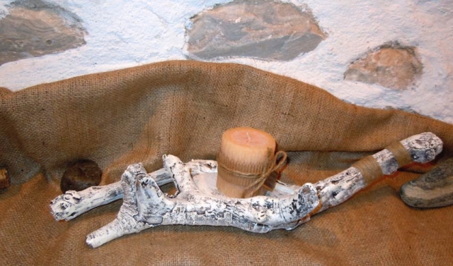 Ξεραμένα κλαδιά , δέρμα, σύρμα.