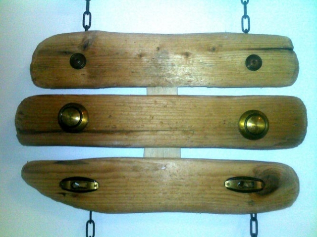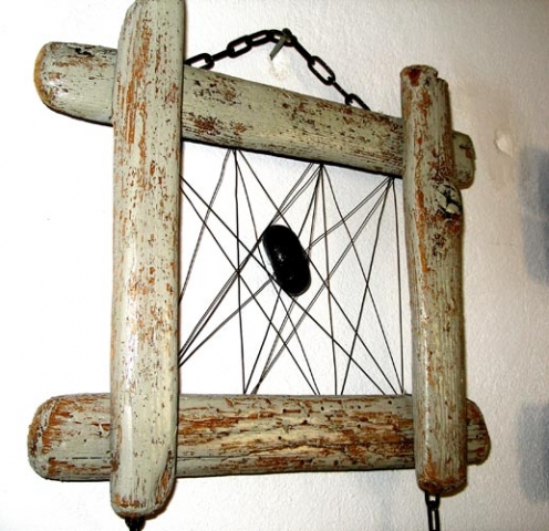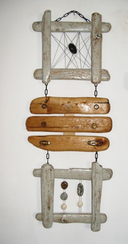 Θαλασσόξυλα, σύρμα χαλκού, μεταλλική αλυσίδα, μεταλλικά διακοσμητικά στοιχεία, βοτσαλάκια.