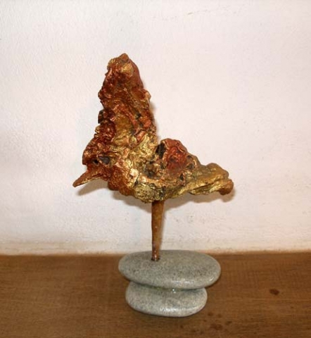 Cane roots on a pebble. Acrylic paint (gold,bronze)