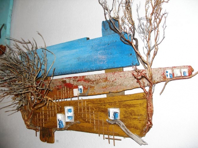 Θαλασσόξυλα στη φυσική τους μορφή και επεξεργασμένα , μεταλλικά στοιχεία, άμμος, κλαδιά.