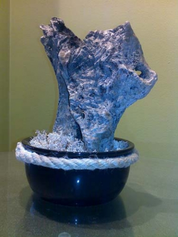 Σύνθεση αποτελούμενη από ρίζα δένδρου φυτεμένη σε κεραμικό δοχείο .